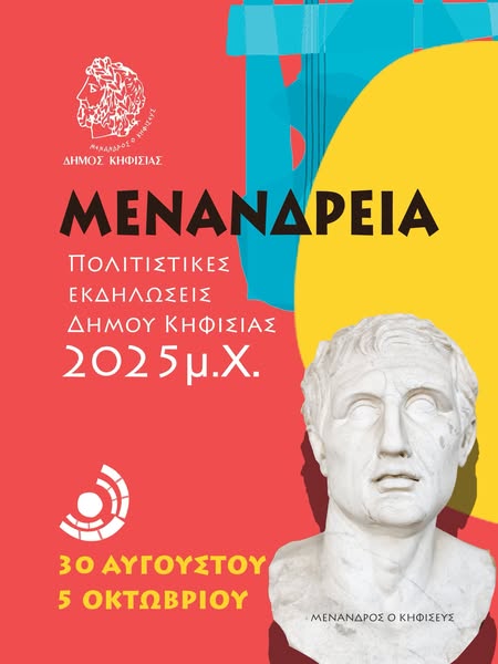 Για μια ακόμη χρονιά ο καταξιωμένος θεσμός του Δήμου Κηφισιάς «ΜΕΝΑΝΔΡΕΙΑ» θα προσφέρουν από 30 Αυγούστου έως 5 Οκτωβρίου 2025 μοναδικές καλοκαιρινές πολιτιστικές βραδιές διασκέδασης και ψυχαγωγίας στους δημότες μας, αλλά και στους επισκέπτες.